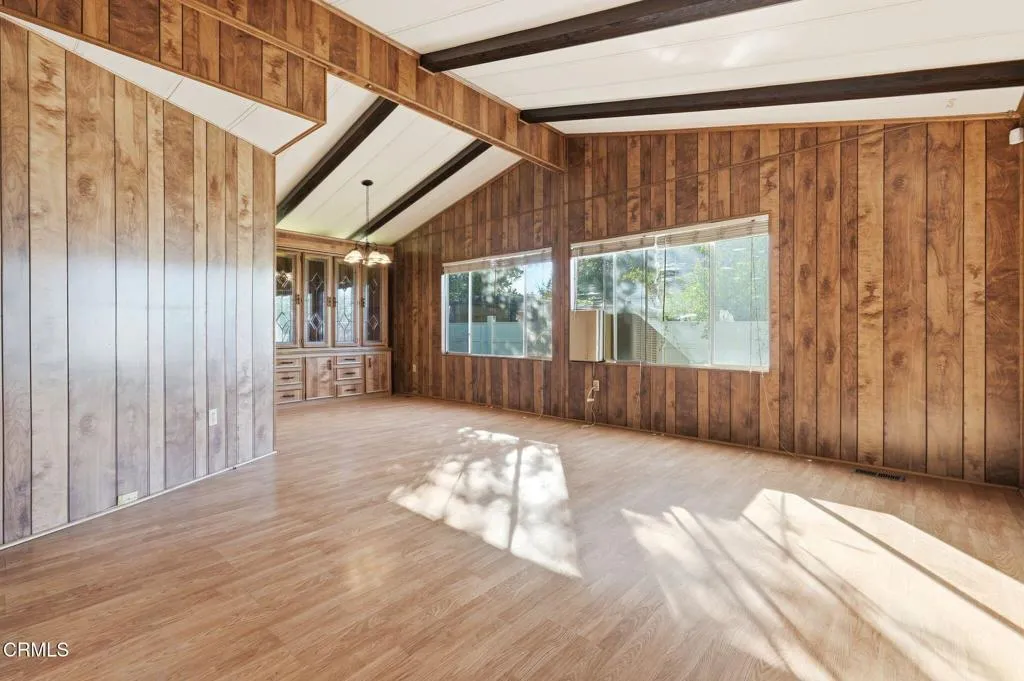 OPPORTUNITY AT MOUNTAIN VIEW ESTATES | SPACE 28Bring your vision to this spacious 2-bedroom, 2-bathroom double-wide home in Upland's highly regarded Mountain View Estates. If you are looking for a project with great 'bones' and a floor plan that feels like a traditional house, this is the one!THE INTERIOR: The expansive living area features impressive vaulted ceilings and dark-stained exposed beams, creating a spacious, lodge-like atmosphere. The formal dining area includes a large built-in hutch with leaded glass cabinetry--perfect for storage or a coffee station.THE SUITE: A true highlight is the primary bedroom, which is exceptionally large and features a massive walk-in closet and an en-suite bathroom with a double vanity and great natural light.EXTERIOR & PERKS: Rare for this park, this unit includes a 2-CAR ATTACHED GARAGE (not a carport) with direct access. Enjoy a long, covered front porch and a fenced side yard area.LOCATION: Located in a desirable all-age community (not 55+) featuring a pool, spa, and recreation center. Directly across from San Antonio Regional Hospital and minutes from the I-10. Sold as-is--don't miss this incredible value!