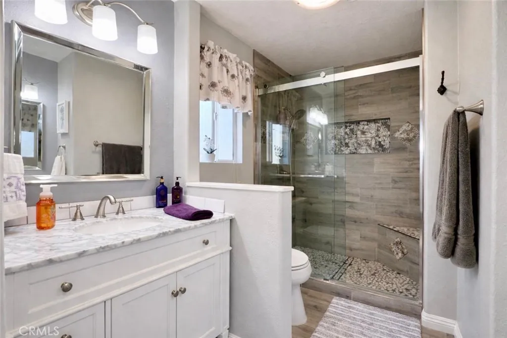 Welcome to this beautifully maintained single-story home tucked away on a quiet cul-de-sac in Calimesa! Offering inviting curb appeal, this charming single-family residence features a bright and comfortable layout with soaring ceilings, spacious living areas, and tasteful updates throughout. The living room feels open and airy, while the remodeled kitchen showcases white cabinetry, stone-style counters, stainless steel appliances, recessed lighting, and a farmhouse sink, flowing nicely into the dining area for everyday living and easy entertaining. The primary suite offers a relaxing retreat with vaulted ceilings and an upgraded bathroom featuring a large custom walk-in shower, while the 2 other bedrooms provide flexibility for family, guests, or home office use. A generously sized indoor laundry room that doubles as an office space, adds convenience and functionality. Step outside to enjoy the beautifully cared-for backyard complete with lush lawn, mature landscaping, stamped concrete, and a covered gazebo-style patio that creates a wonderful setting for outdoor dining, gatherings, or peaceful evenings at home. The side yard offers additional usable space with room for extra parking, recreational vehicles, or storage possibilities. The property also includes an attached 2-car garage and a wide driveway. Ideally located near local parks, trail and community amenities in Calimesa, with convenient access to shopping and dining at The Marketplace at Calimesa, which is anchored by Stater Bros., and easy access to Interstate 10 for commuters. Don't miss out on this opportunity!!