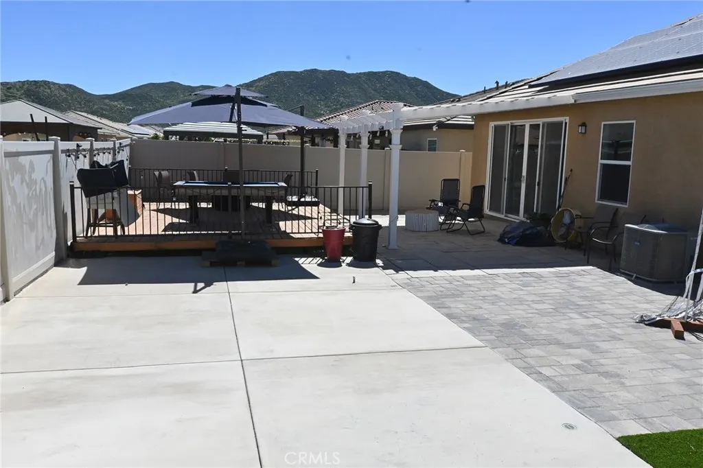 Wonderful, beautifully maintained and upgraded single story home built in 2019 located in a beautiful Winchester neighborhood. This 3-bedroom, 2-bathroom residence offers an open and functional floor plan that in which the great room flows into a modern kitchen featuring white cabinetry, high-definition laminate countertops, stainless steel appliances, and a large center islandideal for everyday living and entertaining. The private primary suite includes a walk-in closet and an on-suite bath. Additional bedrooms provide flexibility for guests. Enjoy a 7.1 home theater system with Klipsch speakers. Energy efficient features include a 21kW solar system that produces approximately 32kw and central HVAC. Additionally, there is a home backup generator by Generac that will supply power when there is an area power outage. The property also offers an attached two car garage with an EV outlet and low maintenance landscaping with artificial turf front and back yards. Quad sliding doors open to the backyard, creating seamless indoor-outdoor living with a built-in deck and fire pit, perfect for outdoor entertaining. Solar panels with an assumable lease. This marvelous home is move in ready and a fantastic opportunity. Located near schools, parks, shopping, commuter routes, and a short drive to Temecula wine country or Diamond Valley Lake.