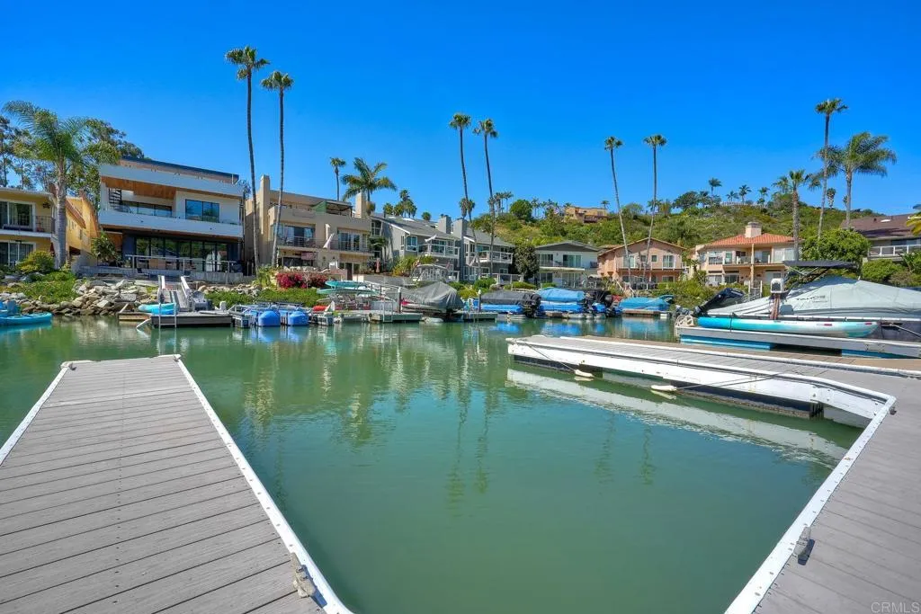 EXPERIENCE WATERFRONT LIVING IN BRISTOL COVE! This special property offers a rare chance to own one of the few single-family homes in this highly sought-after coastal community. Set on Agua Hedionda Lagoon, this single-story residence includes a private dock, two boat slips, and a spacious west-facing waterfront patio ideal for sunset views, relaxed evenings by the water, and enjoying Bristol Coves one-of-a-kind boating lifestyle. The 1,425 square foot home offers 2 bedrooms, 2 baths, and a flexible space for an optional third bedroom or office. Water views and abundant natural light give the home a warm coastal feel, with a vaulted-ceiling living room, timeless white cabinetry, a cozy bar area, and an inviting dining space. A rare three-car garage provides ample room for parking and storage, with potential future conversion of one bay to a junior ADU. Whether enjoyed as-is or renovated over time, the unique combination of detached waterfront living, private dock access, and future versatility makes this a truly special offering. Zoning also allows for duplex potential, creating additional opportunity for multi-unit use and development. Just minutes from Carlsbad Village, beaches, dining, shopping, and I-5. A rare opportunity to own one of Bristol Coves most coveted waterfront properties.