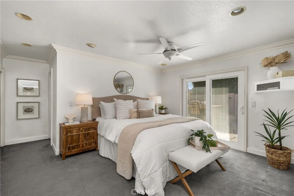 Experience effortless California living in this beautiful single-story 4 bedroom, 2 bath pool home, thoughtfully designed for comfort, style, and year-round enjoyment. The home welcomes you with a System Pavers driveway and front porch entryway, artificial turf lawn with beautiful landscaping, LED landscape lighting, and a custom front door. Inside, a bright living room with bay window, high beamed ceiling and built-in entertainment center provided the perfect gathering spot. The granite-faced fireplace with painted wood mantle plus the over-sized tile flooring adds a touch of elegance to the space. The dining nook features a charming banquette flanked by gorgeous built-in wood china cabinets. The space flows seamlessly into the remodeled kitchen featuring rich wood cabinetry, granite counter-tops, convenient breakfast bar, built-in refrigerator, wine chiller & high-end stainless appliances. Sliding doors from both the primary suite and kitchen area open to a private resort-style backyard with a remodeled pool and spa, waterfall, grotto, rock water slide, gas fire pit, and outdoor BBQ centerperfect for relaxed evenings and weekend gatherings. All bedrooms offer built-in closet organizers and mirrored closet doors, while the 4th bedroom is customized as a dual-station home office. A FULLY OWNED SOLAR SYSTEM, lightweight concrete tile roof, newer over-sized HVAC, newer water heater, and new Anderson double-pane windows provide exceptional efficiency. Additional highlights include a custom remodeled guest bath with tiled shower and soaking tub, indoor laundry room with storage