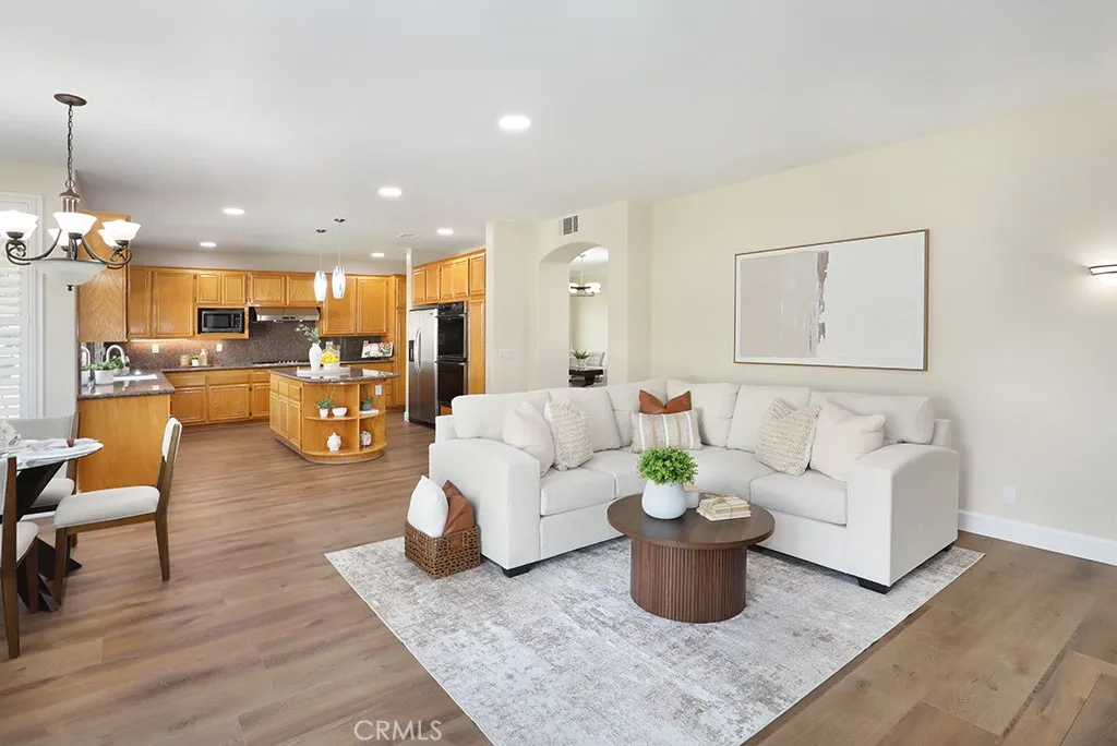 LARGEST MODEL PLAN 3 in GATED COMMUNITY of ALICANTE with interior location. Spacious 3,325 sq. ft, 4 Bedrooms PLUS Bonus Room PLUS Office and 3 Baths. Grand entrance with Travertine Flooring, Cathedral Ceilings. Grand Formal Living Room with Custom Drapery and NEW Silhouette Shades and Custom Mirror (included). New LVP Flooring, New Recessed Lighting, New Chandeliers, New Baseboards, New Paint, New Custom Window Shades. Formal Dining Room with Wet Bar and Glass Shelving, Plantation Shutters and Crown Molding. Cozy Fireplace in Family Room with a Breakfast Nook, Slider to backyard with custom Silhouette Electric Shade. Gourmet Granite Island in Kitchen. Brand New Stainless Dishwasher, Faucet, New Stainless Vent over gas cooktop, Dual Ovens. Tons of storage in Kitchen. MAIN FLOOR BEDROOM. MAIN FLOOR NEWLY REMODELED BATH with Shower. ALL BATHS REMODELED, NO CARPET DOWNSTAIRS. NEW DUAL AC, FURNACE & WATER HEATER. Upstairs Office with built-in desk and storage cabinets AND Closet, could be a 5th bedroom. PRIMARY BEDROOM with cathedral ceilings, Custom Drapes, NEW CARPET with upgraded padding. Primary UPGRADED bathroom with soaking tub and walk-in shower. Primary Large Walk-In Closet. 3 Additional Spacious Bedrooms Upstairs, NEW Carpet. BONUS room with Plantation Shutters and wood flooring. Synthetic, easy care, grass in front yard and backyard. Spacious 3 car garage with driveway. Close to Highly Rated Schools, Parks, Peters Canyon Walking Trails, Irvine Park, Market Place and District Shopping, Freeways. TERMITE CLEARANCE. NO MELLO ROOS and Low HOA.