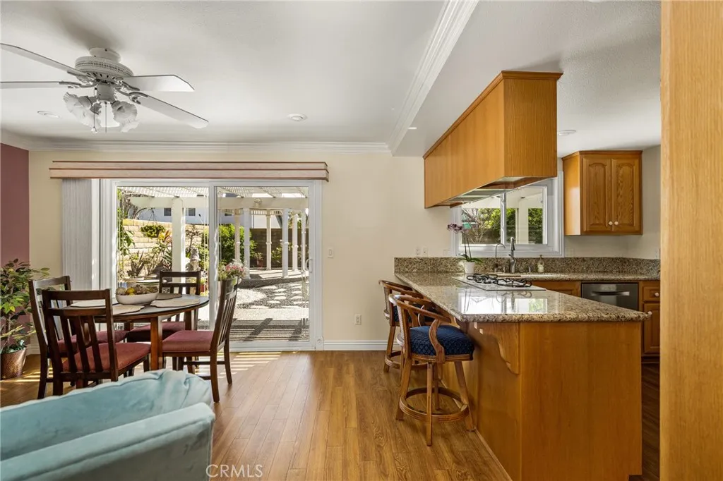Welcome to this beautifully maintained 3-bedroom, 2-bath home that perfectly blends comfort, style, and versatility. Step into a spacious living room filled with natural light from a stunning picture window, anchored by a charming brick fireplace...ideal for cozy evenings or entertaining guests. The flexible family room offers endless possibilities, whether you envision it as a relaxed gathering space, a formal dining room, or a combination of both, all conveniently located adjacent to the kitchen. Throughout the home, youll find tasteful upgrades including wood laminate flooring, elegant crown molding, classic 6-paneled doors, double-pane windows, and a newer front door. Additional features such as mirrored wardrobe doors and ceiling fans add both comfort and functionality. The kitchen is a true highlight, boasting granite countertops, top-of-the-line appliances, and convenient pull-out drawers designed for both beauty and efficiency. An inside laundry room adds to the home's practicality. Outside, the home shines with outstanding curb appeal. The red brick and stucco exterior is complemented by beautifully landscaped front and back yards, featuring low-maintenance artificial turf and an aluminum-covered patioperfect for outdoor dining or relaxing year-round. Located in a highly desirable neighborhood near the Old Town Orange Plaza, with easy access to freeways, hospitals, shopping, restaurants, and local breweries, this home offers the ideal blend of charm, convenience, and lifestyle.