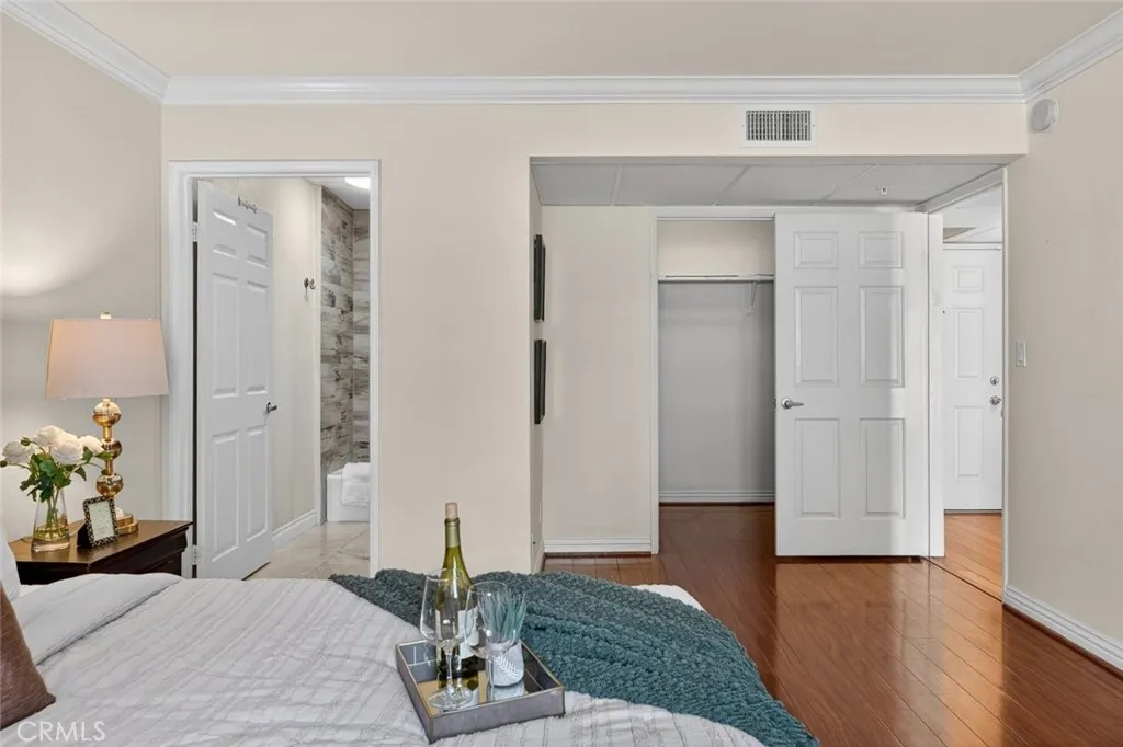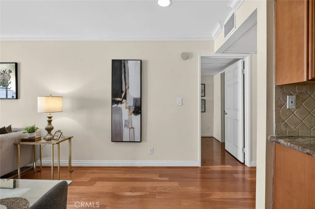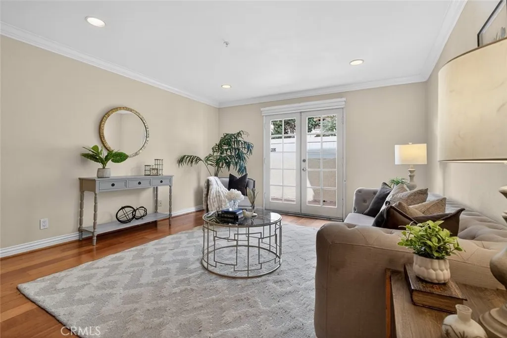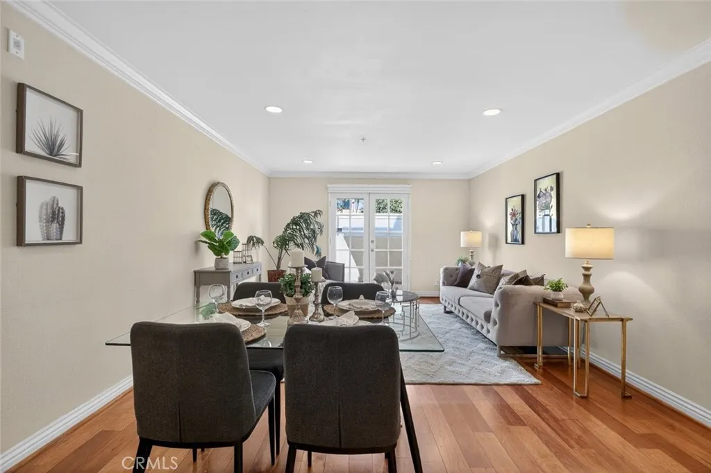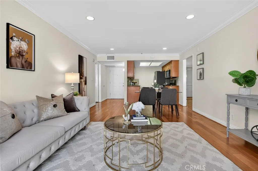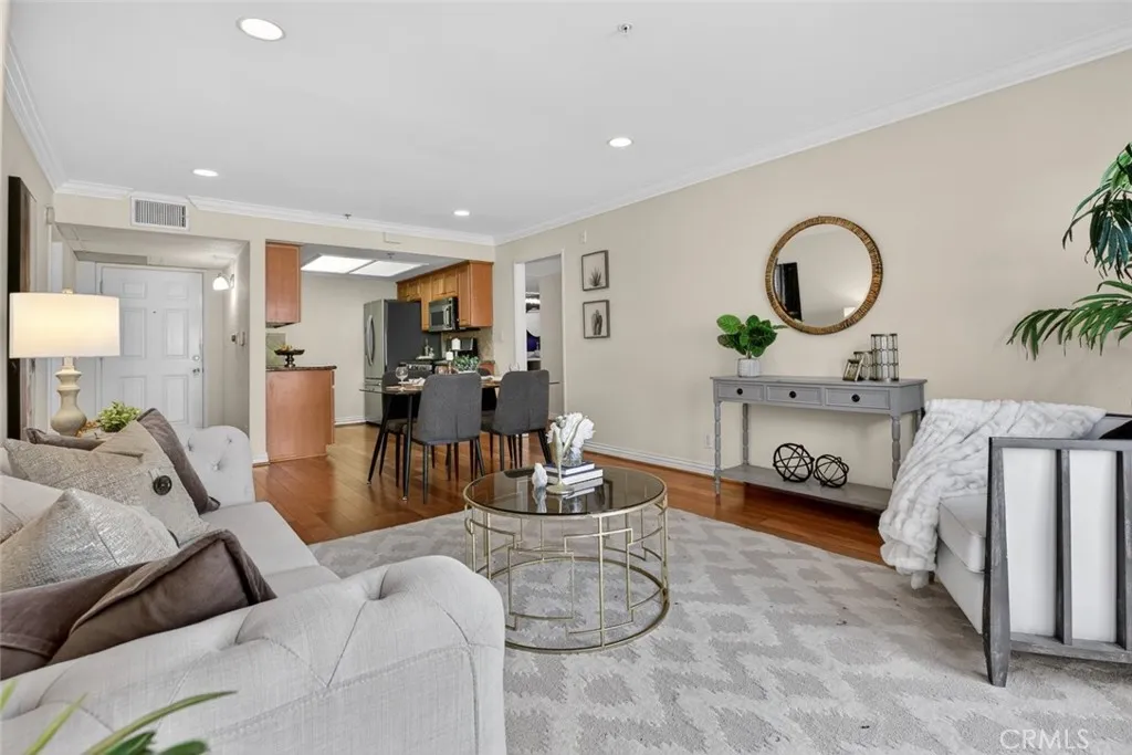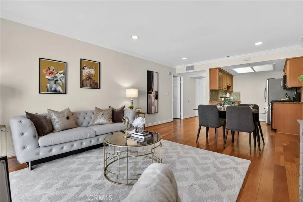 Beautifully maintained condo in the heart of Glendale, offering a seamless blend of comfort, style, and convenience in a highly desirable location. This spacious unit is thoughtfully designed open floorplan ideal for both everyday living and entertaining. The interior features warm wood flooring, elegant crown molding, and recessed lighting, creating a refined yet inviting atmosphere. The living and dining areas flow effortlessly into the well-appointed kitchen, complete with granite countertops, ample cabinetry, and stainless steel appliances. Striking French doors from the living room open to a charming private patio, creating a seamless indoor-outdoor extension perfect for relaxing or entertaining. Both bedrooms are generously sized, including a primary suite with a walk-in closet and en-suite bath. Additional highlights include in-unit laundry and two assigned community parking spaces. Ideally situated near the Americana at Brand and the Glendale Galleria, with convenient access to major freeways, placing shopping, dining, and commuting within easy reach. Located close to shopping, dining, and major commuter routes, this home offers the perfect blend of comfort and accessibility in one of Glendale's most sought-after neighborhoods.