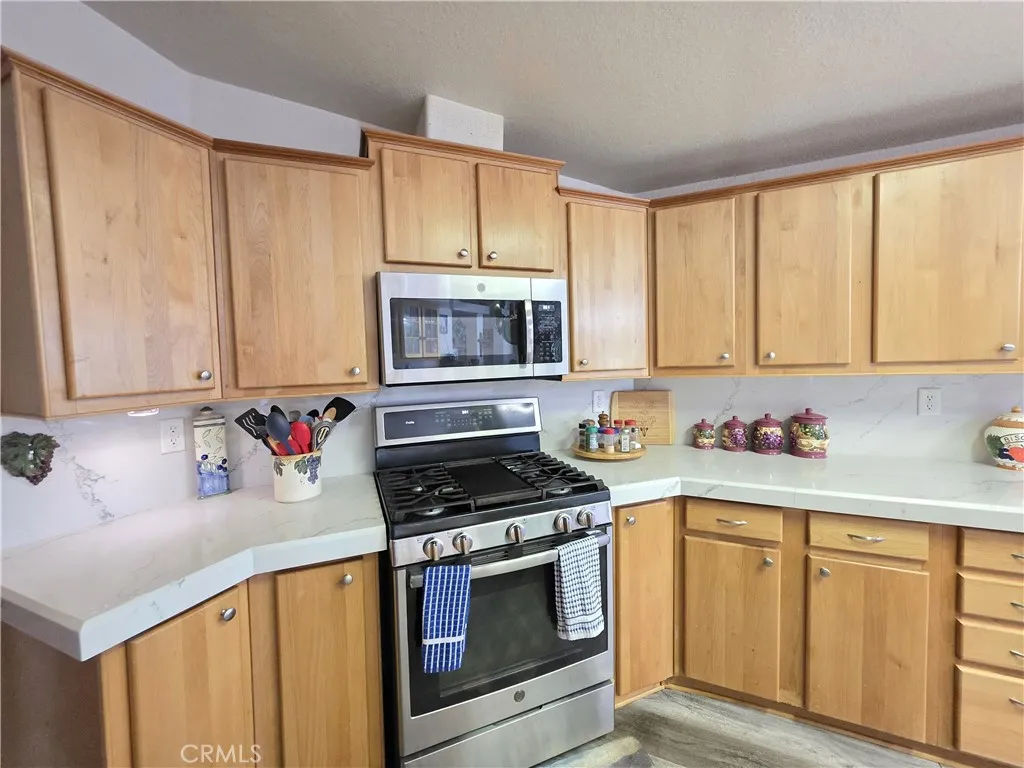 Beautifully upgraded custom home located on the lakeside of Kelly Ridge, offering stunning views of Lake Oroville. This spacious 3-bedroom, 2-bathroom home features approximately 2,132 sq ft of living space with an expanded floor plan that enhances the kitchen, formal dining room, and bedrooms for added comfort and functionality. The primary suite includes a large walk-in closet along with a walk-in tub and separate shower. Situated on a .27-acre lot bordering Lake Oroville State Park, the property offers privacy, scenic surroundings, and a quiet setting on a shared driveway with only a few neighboring homes. The oversized 22x28 garage includes wheelchair-accessible entry to the home, and the property also features RV parking plus additional parking spaces. Inside, the home has been thoughtfully updated with granite countertops and backsplash, waterproof vinyl flooring, a pellet stove, and a spacious pantry with utility sink behind stylish barn doors. Energy efficiency is enhanced with added insulation, a solar system, and a Heat Shield attic treatment. Additional features include a Generac backup generator, walk-in tub (installed 2025), and well-maintained HVAC system. Outdoor living is just as impressive with a large Trex deck and sunshade, terraced landscaping with retaining walls, drip irrigation for fruit trees and shrubs, and a fully fenced perimeter with deer fencing. Recent improvements include gutter leaf guards and RoofMaxx treatment for extended roof life. This property combines comfort, functionality, and incredible lake views, ideal for full-time living or a pe