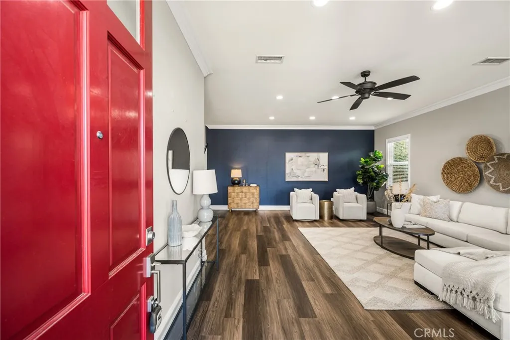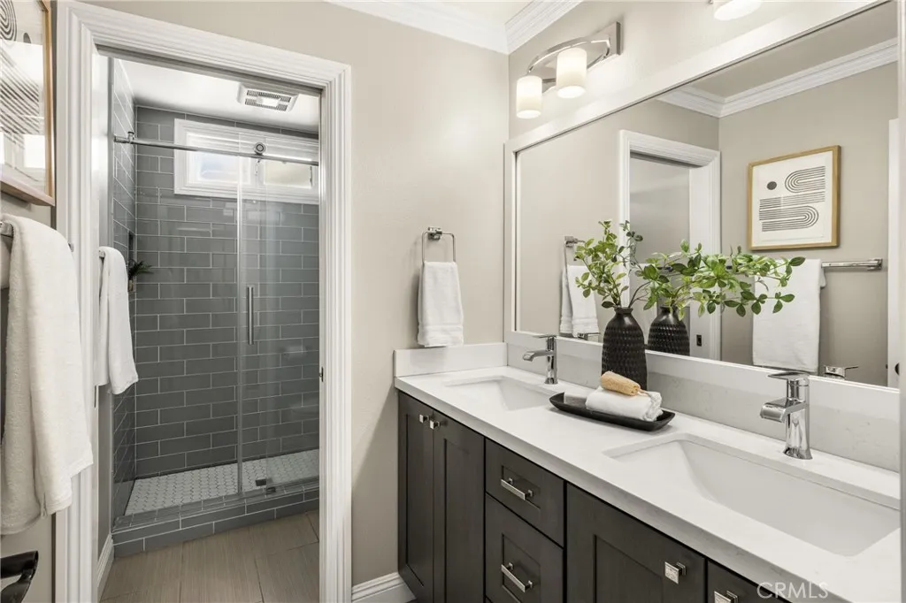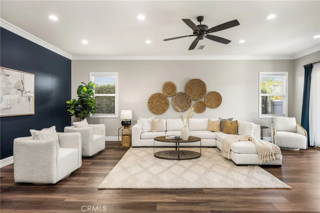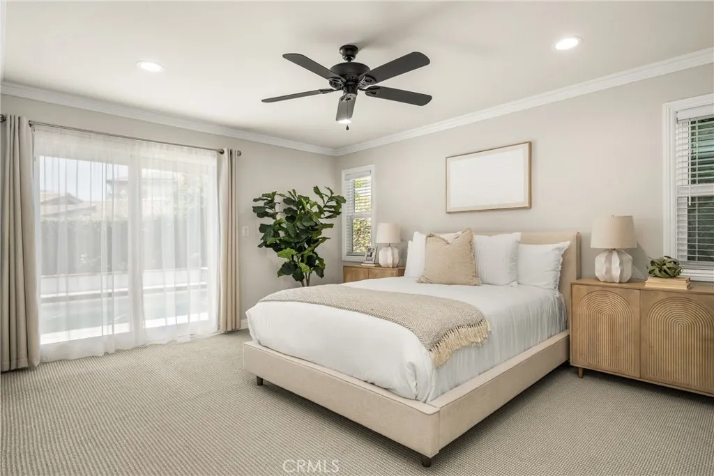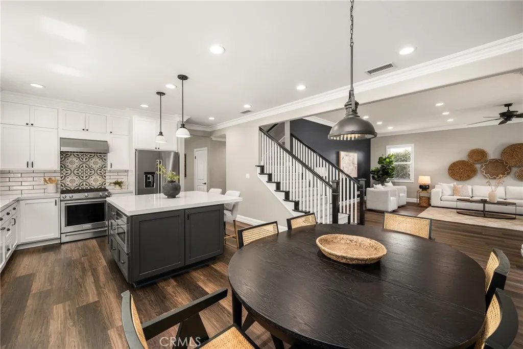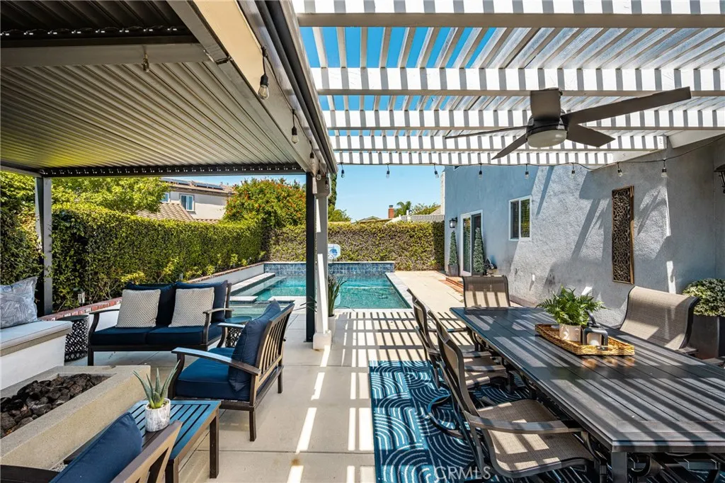 Fully remodeled home located in a highly desirable Irvine neighborhood with no HOA and no Mello-Roos. This property features a main floor primary bedroom and bathroom, offering convenience and flexibility. Interior and exterior upgrades include luxury wide plank vinyl flooring, open floorpan, custom kitchen cabinets, quartz countertops, and a walk-in pantry. The spacious living room offers high ceilings and abundant natural light. Upstairs includes three bedroom, bathroom and a walk-in storage area. Additional features include Ethernet wiring throughout and paid solar. A secondary family room at the rear of the home opens to the backyard. Outdoor amenities include a remodeled PebbleTec pool and spa with mobile controls, a custom fire pit with polished concrete seating, and an aluminum pergola with adjustable coverage for sun and shade. The home also includes dual-zone cooling for added comfort. Conveniently located near highly rated Irvine schools