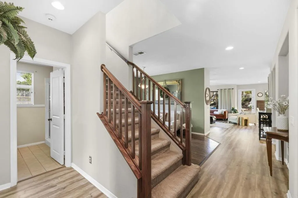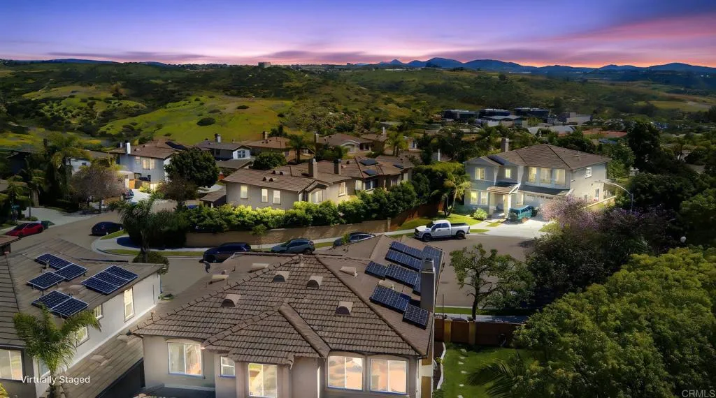 Tucked away at the end of a peaceful cul-de-sac in the highly sought-after Summerhouse enclave of Calavera Hills, this exceptional Carlsbad residence offers the rare combination of space, versatility, and an unbeatable North County lifestyle. Situated on an oversized premium lot, the property provides an uncommon sense of privacy and possibilityperfect for outdoor entertaining, recreation, or creating your dream backyard retreat. The generous grounds offer ample room for gatherings, play areas, gardens, or future pool possibilities. Inside, the home features a rarely available 5-bedroom configuration, thoughtfully designed for flexibility and comfort. Several bedrooms include en-suite bathrooms, creating ideal accommodations for family members, guests, or multigenerational living. A convenient downstairs bedroom adds additional versatility, perfect for visitors, a private office, or extended family stays. Comfort and efficiency are enhanced with central air conditioning and an installed solar system, delivering modern convenience and energy savings year-round. The well-designed layout provides abundant natural light and inviting living spaces that flow seamlessly to the expansive outdoor areas. The location is equally compelling. Residents enjoy walking distance to Calavera Hills Community Park, a 21-acre community hub offering playgrounds, athletic fields, tennis and basketball courts, picnic areas, and an active community center with programs for all ages. Outdoor enthusiasts will love being moments from the scenic trails surrounding Lake Calavera Preserve, known for its