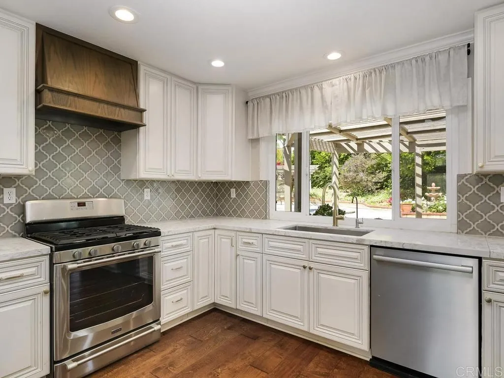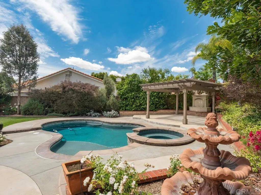 Welcome to 677 Garwood, a beautifully upgraded home nestled near the end of a quiet cul-de-sac in the highly sought-after Mission Grove community. This move-in-ready home truly checks all the boxesfeaturing an upgraded kitchen, a convenient downstairs bedroom and bath, a resort-style pool and jacuzzi, expansive outdoor entertaining spaces, lush gardens, an EV charging station, and no HOA. Pride of ownership is evident throughout this meticulously maintained 1991-built home, offering 4 bedrooms, 3 bathrooms, and a 3-car garage on an oversized 0.3-acre lot. Thoughtful upgrades over the years include engineered hardwood flooring downstairs, plush carpet upstairs, dual-pane windows throughout, upgraded front and back doors (plus a doggie door), recessed lighting in nearly every room, and fresh interior paint. The heart of the home is the tastefully remodeled kitchen, featuring quartz countertops, custom cabinetry with soft-close drawers, modern hardware, upgraded lighting, stainless steel appliances, a coffee bar, and a spacious walk-in pantry. A charming breakfast nook overlooks the lush backyard, creating the perfect setting for quiet mornings or entertaining family and friends. The primary bathroom has been beautifully upgraded with a standalone soaking tub, walk-in shower, new flooring, dual sinks, and custom cabinetrydesigned for relaxation and comfort. The downstairs bathroom has also been fully remodeled and extends into the laundry room with new flooring, shower, tilework, wainscoting, and updated fixtures. The drywalled 3-car garage provides ample storage and includes